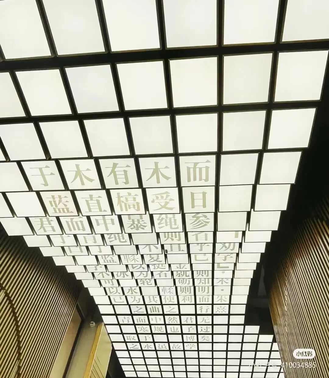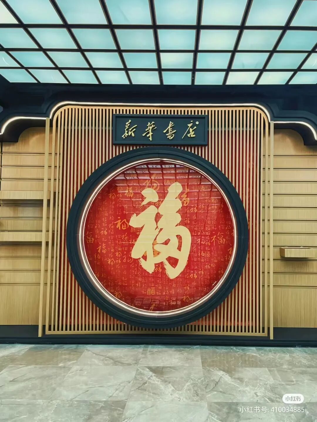 福州安泰新华书店,采用了原木栅格式的中式设计,一个大大的福字显得非常好看。