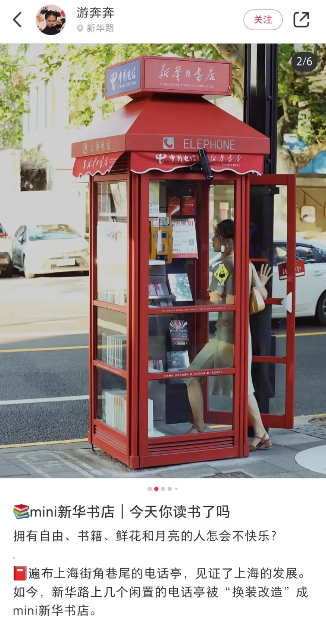 比如同在上海市区的新华路上,就开了一个电话亭式的小型mini新华书店,看起来复古可爱。