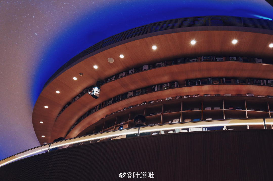作为设计界的“光影大师”,安藤忠雄老师设计的顶部星空氛围灯在场景变暗的时候,形成了极强的艺术美感,成为了整个书店最为亮眼的存在!