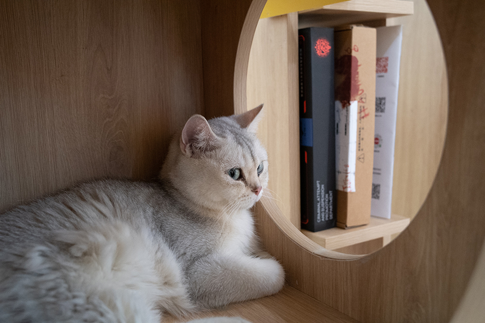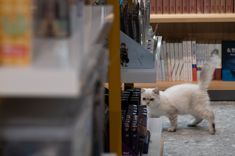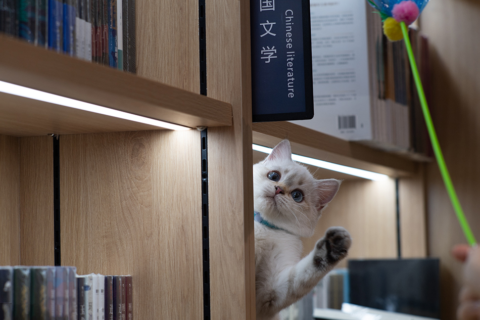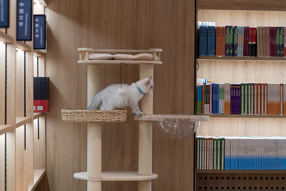 除此之外,还设置了宠物领养区。据负责人说,书店里的猫猫都是退役品种猫,希望通过倡导领养代替购买的形式帮毛孩子们找到家庭。