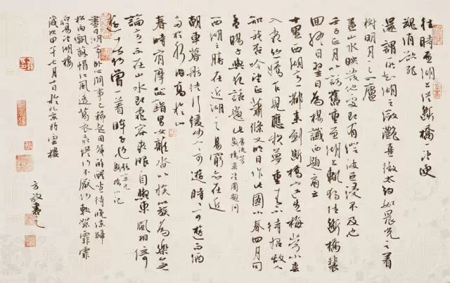 11、书法创作艺术的章法,要表达个性,抒发情怀,依原诗词的意境,进行二度创作。因此,必须在书前要研究所书的诗词文章所揭示的问题,如创作主旨,创作背景,写作年代,以及作者本人都要进行研究、理解。从中获得感情的激发糅合于笔墨技巧之中,此时提笔书之,其章法必然美而多变。