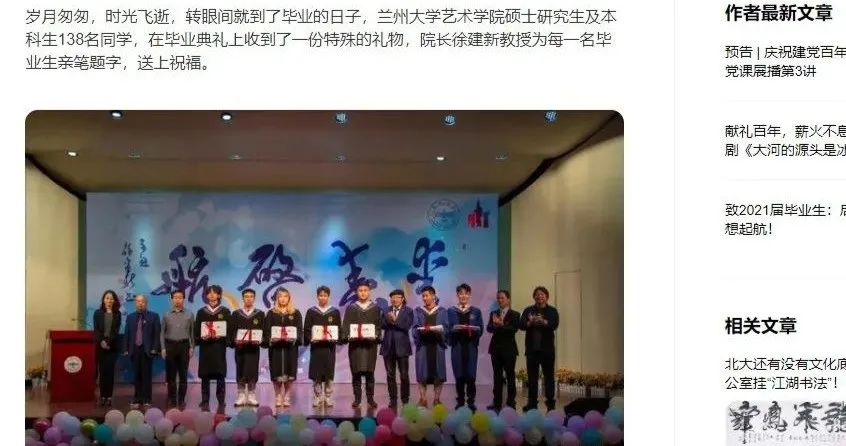 报道介绍的是兰州大学艺术学院院长徐建新教授亲笔书写书法作品,赠送138位硕士研究生及本科生。内容很丰满,现实很骨感。很多书法爱好者看了他的作品,齐呼太差了,还不如乡下老农写的字!