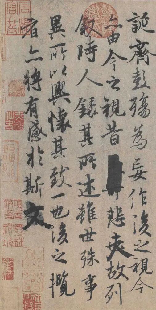 儿子宋高宗擅长书法、绘画,尤其在书法上造诣极高。他最初是学黄庭坚,登基不久用黄书,后用米芾笔法,再学“二王”,其书法的笔法随性而且大气,饮墨如水的感觉让人很舒服。笔墨的法度自然性极强,这绝不是一般书法大家所能堪比的。