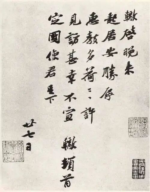 明代父子型书家,父亲文徵明,儿子文彭。文徵明书法温润秀劲,透露着一股文雅之气。特别是文徵明的行书,风格劲秀健美,字里行间飘逸又不失沉稳之感,笔画舒展却不失古人规矩,是文人书法的典范之作。