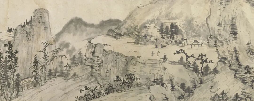 董源的《潇湘图》对比范宽的《溪山行旅图》,完全不一样。《溪山行旅图》一定要在山里面走,不是坐船的。而《潇湘图》是董其昌在湘江坐船游赏后,再看到此卷即刻定名的。李唐的《万壑松风图》和南宋董巨派的大家江参所画的《千里江山图》,代表了“山中山水”和“江上山水”的差异。王履的《华山图》是山上看到的景致,与夏圭所画江上的《烟村归渡图》很不一样。