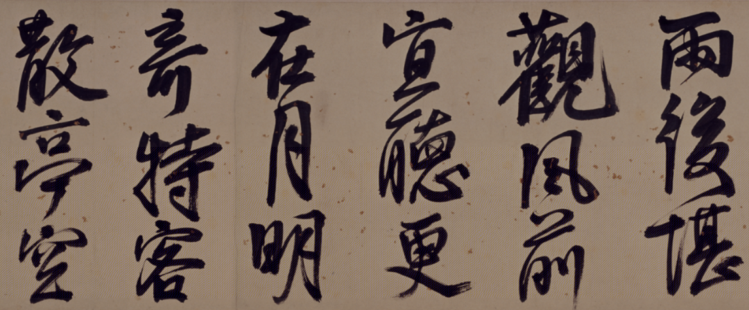 张鹏翼写过一幅立轴,“舟泊苍梧”。立轴比较少见,因为船上地方小,写册页和手卷的比较多,立轴写起来比较麻烦,空间有限,可能是有人替他前后拉着纸来写。王铎有一幅《临米芾》的书法,米芾有很多船上的作品,所以其中的“舟次”不是讲王铎在舟中,而是临的米芾在舟中,但王铎也有在舟中写的隶书册及立轴。