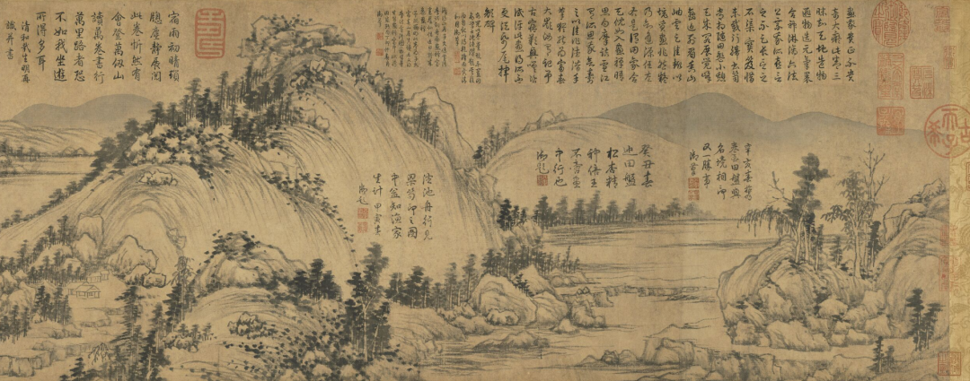 赵孟頫家在太湖南岸的吴兴,他要北上做官,也需要经过很多水路,都是要坐船的,《兰亭十三跋》就是在船上写的。有一次我们在赵孟頫的家乡湖州开会,在路上看到运河,赵孟頫的那条船当年可能也经过这些运河,当然河岸两侧的房子已经不一样了。赵孟頫的前辈,比较年长的一位画家钱选也画过《归去来辞图》,他画的陶渊明乘船返乡,似乎是太湖上的景致。赵孟頫有一张《吴兴清远图》,就是在辽阔的湖面上画了一系列远远的山,一定是在湖面船上才能看到的景致。在船上不但可以欣赏风景,画出跟这风景一样的画来,也可以题跋古代的书画。我曾访倪云林墓和黄公望墓,也研究元四家与其居所环境的关系。他们的画里,水面非常空阔,都是跟他们的旅行经验、住的地方有关系。