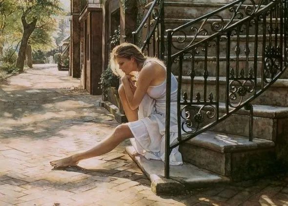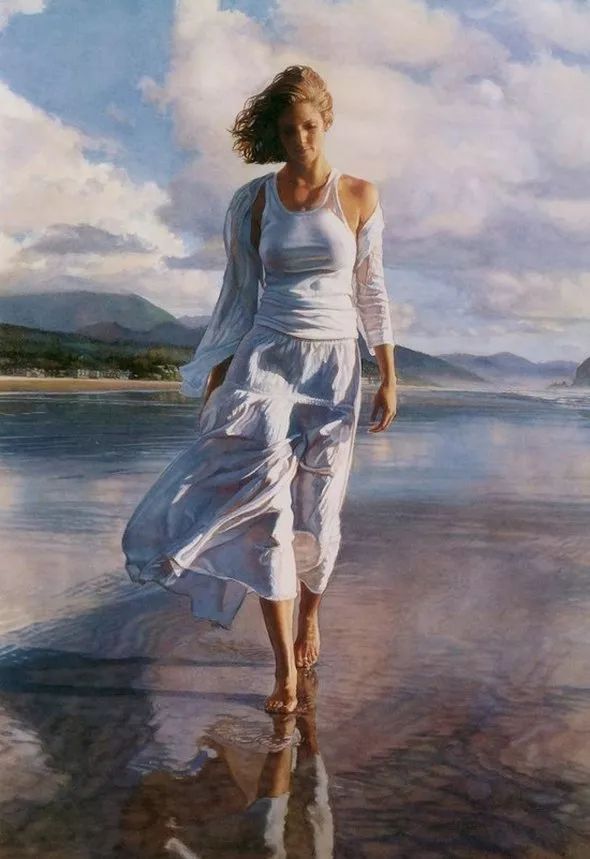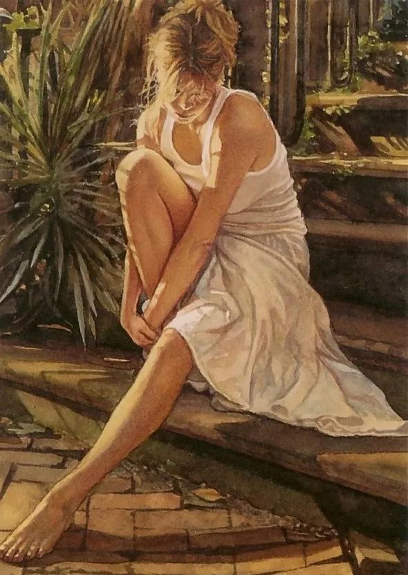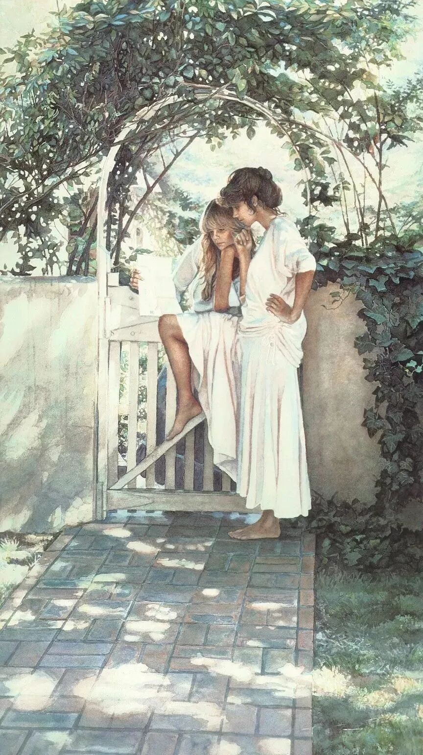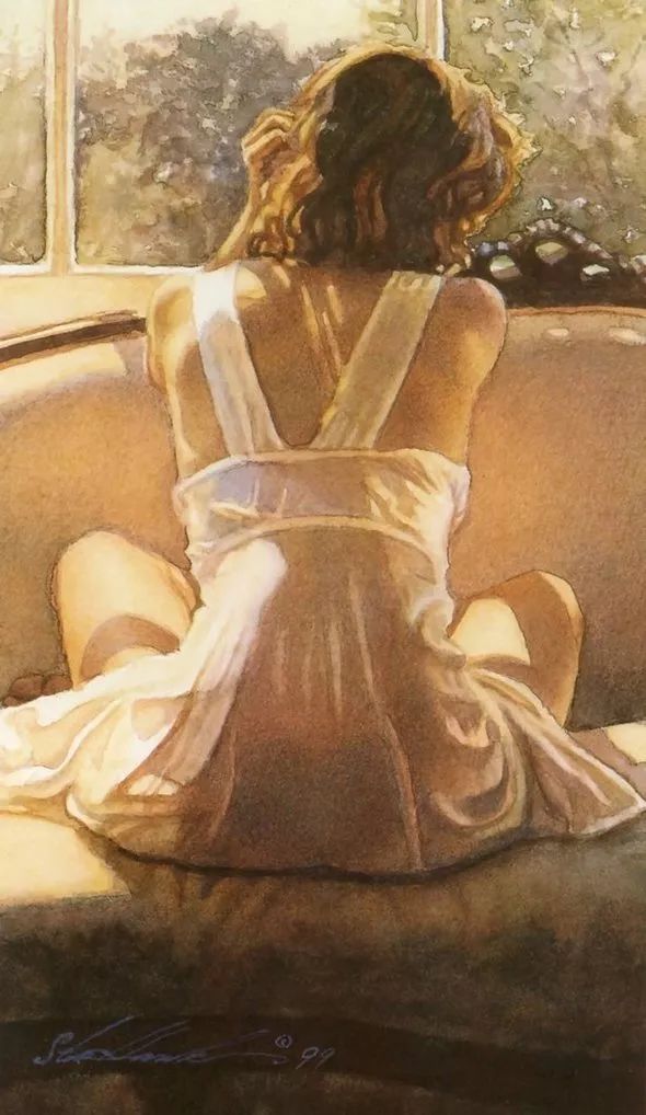 史蒂夫·汉克斯以妇女和儿童为主要创作对象,画中充满了生活的平实感,是一种让人见了就会怦然心动的感动,是一种深度触摸人们平常实际生活,和再现“平实”中的激情涌动的作品。他的水彩画里,深深地饱含着情感,是充满光影的诗句。留下一幅美的画时,也留住了他心中最美的时光。
