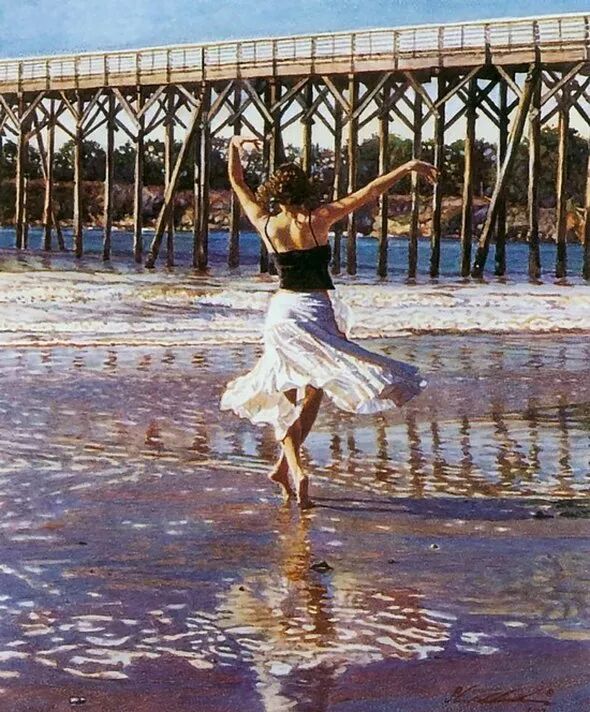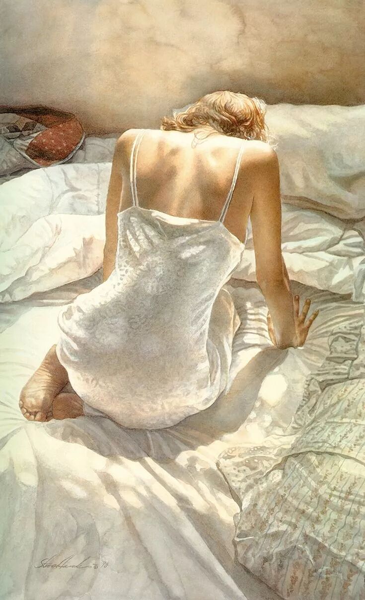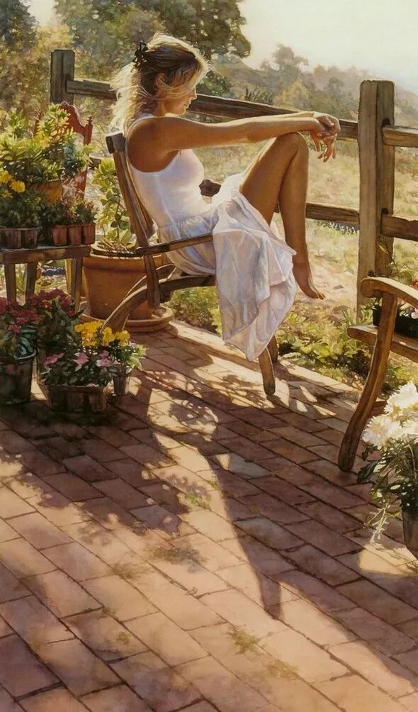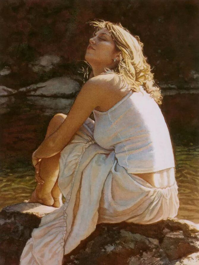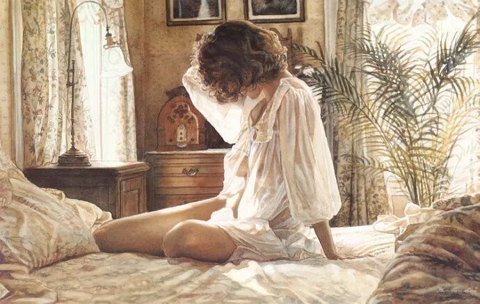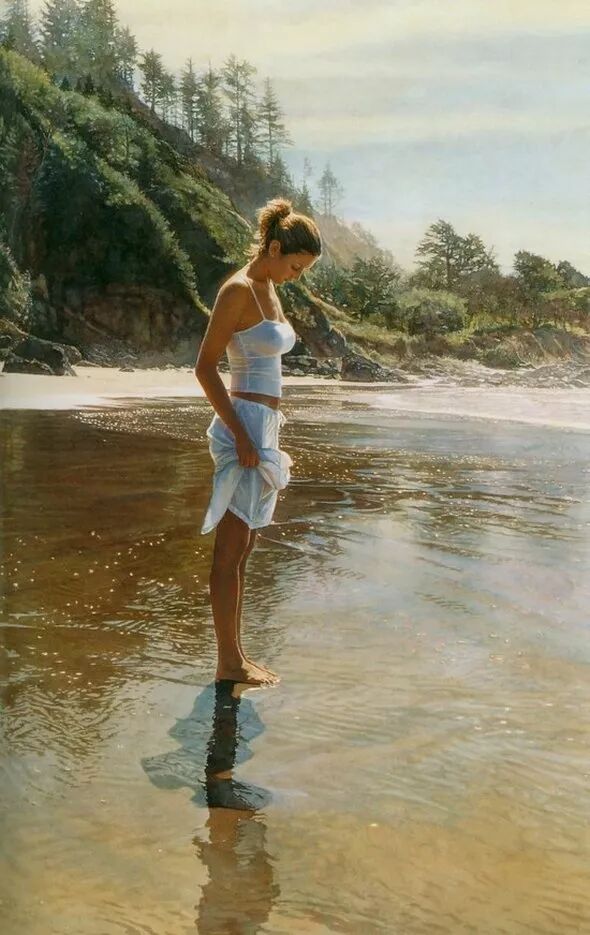 史蒂夫·汉克斯以妇女和儿童为主要创作对象,画中充满了生活的平实感,是一种让人见了就会怦然心动的感动,是一种深度触摸人们平常实际生活,和再现“平实”中的激情涌动的作品。他的水彩画里,深深地饱含着情感,是充满光影的诗句。留下一幅美的画时,也留住了他心中最美的时光。