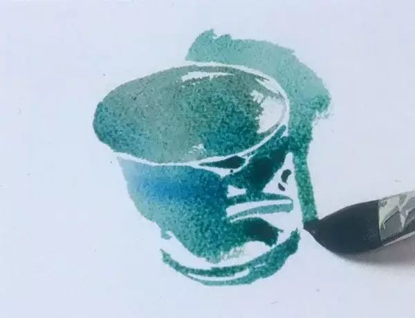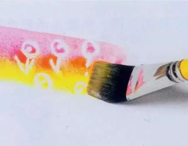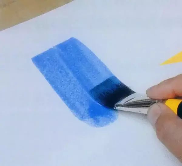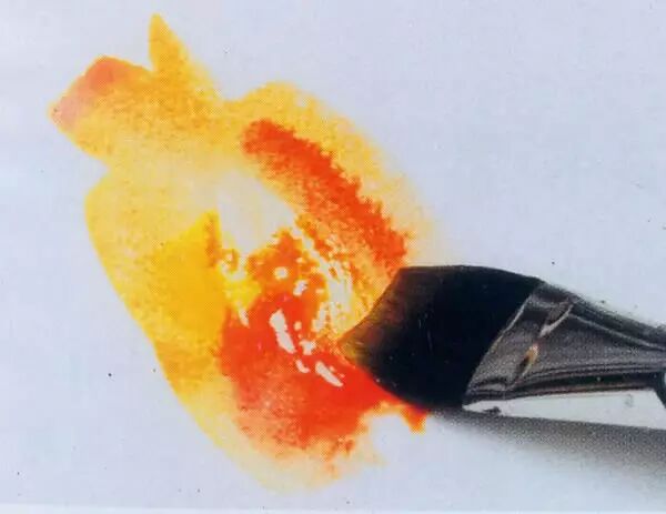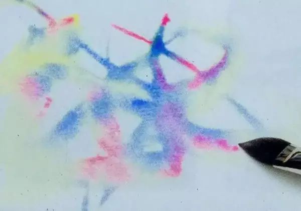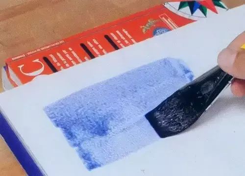2. 颜料未干时,用含水的板刷涤刷色彩边缘。