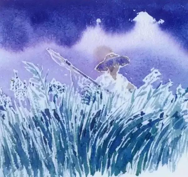 渗化法是水彩画中的一种基本技法,渗化法可用于表现云或草丛等。