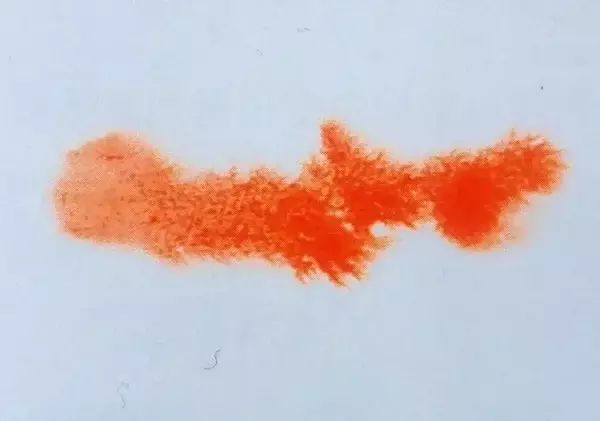 纸的倾斜度不大,颜料流动缓慢,从颜料浓厚的区域开始沉积在纸上。