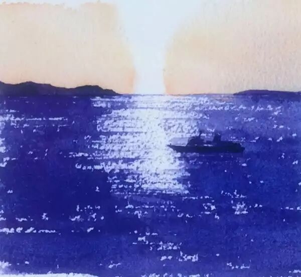 颜料自然流动,渐变效果非常华丽。运用渐变涂法适合表现天空、海洋等场景。