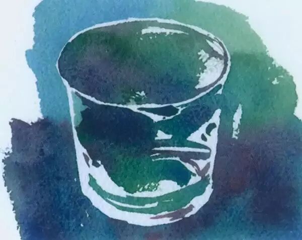 底色干透后,溶解充足的钴蓝色在黄色上面叠加涂覆。
