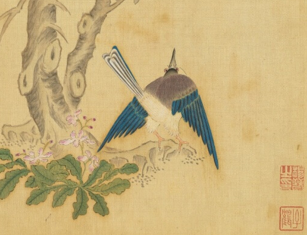 清 鸟谱(白喜鹊)(局部)