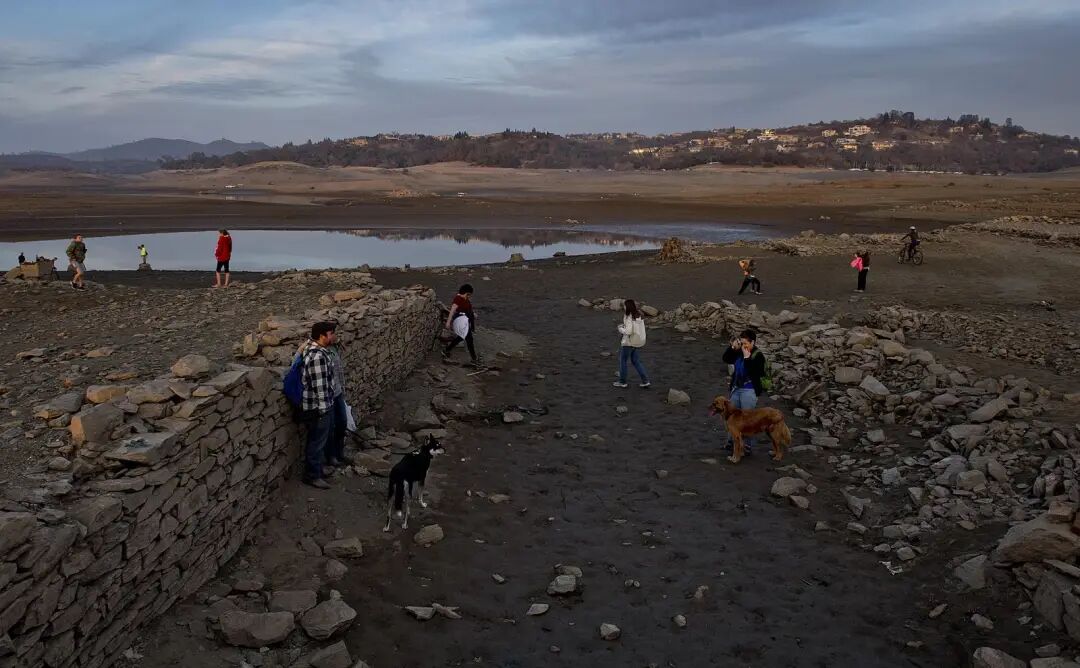 曾经参观过这里宁静的湖泊的当地人现在来到湖底参观废墟,虽然没有一栋房屋在洪水中幸存下来,但在湖床上花费了数十年的旧台阶、地窖和墙壁都暴露了出来。