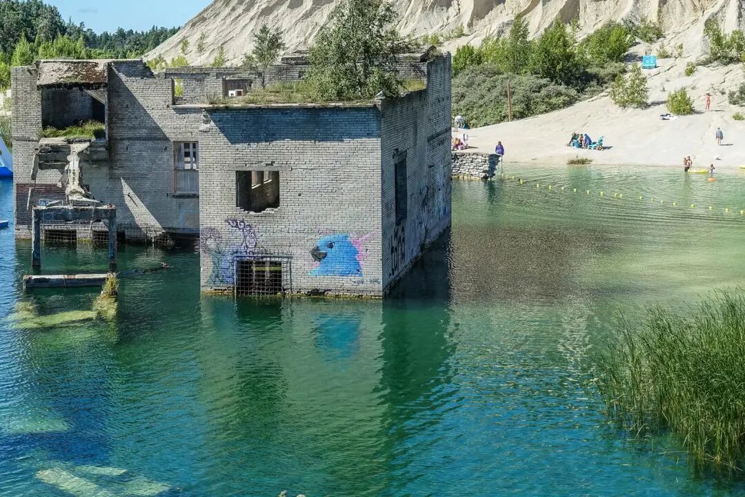 爱沙尼亚北部的鲁姆小镇,游客可以在苏联监狱建筑群的废墟中游泳和晒太阳。监狱于20世纪30年代首次使用,由苏联建立,使用囚犯开采石灰石采石场。爱沙尼亚重新获得独立后,监狱、采石场以及水泵都被废弃了,在没有机器抽水的情况下,大自然恢复了它应有的位置,采石场填充了天然湖泊,让监狱建筑群没入水中。虽然建筑的历史有些黑暗,但现在这里已成为当地人的避暑胜地。