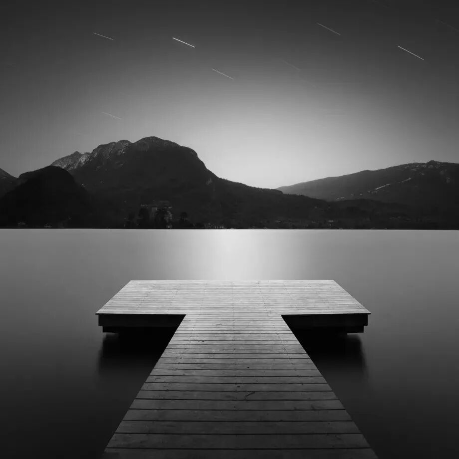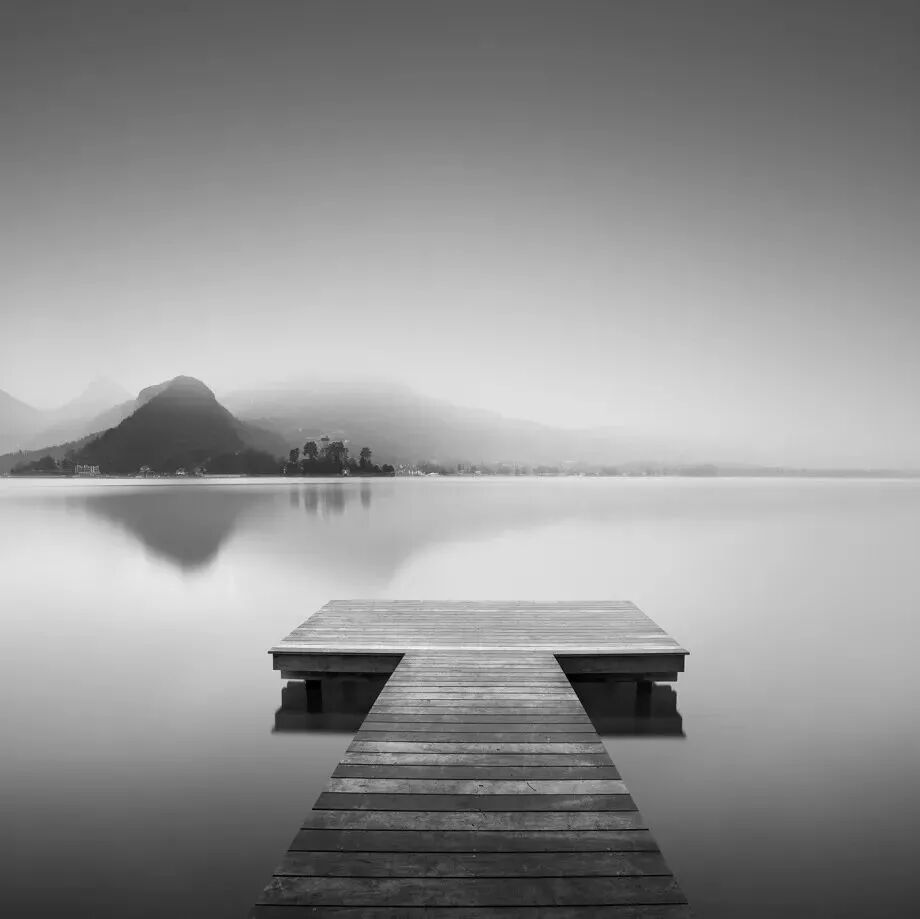 水面如镜的黑白风光摄影,极简又静谧,他是这么做到的!