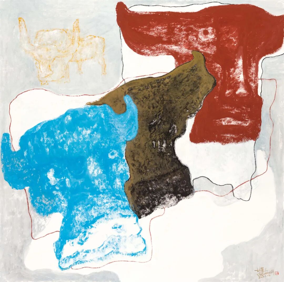《牛的故事》大泽人 48cm×48cm 综合媒材纸本 2019年
