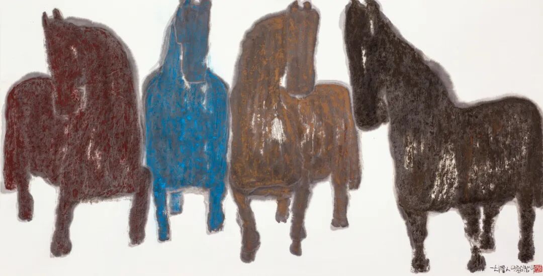 《马的传说 · 四君子》 大泽人 68cm×136cm 彩墨纸本 2016年