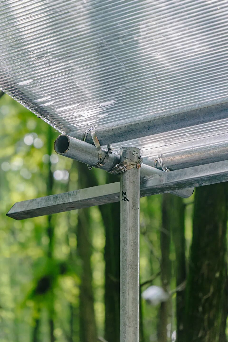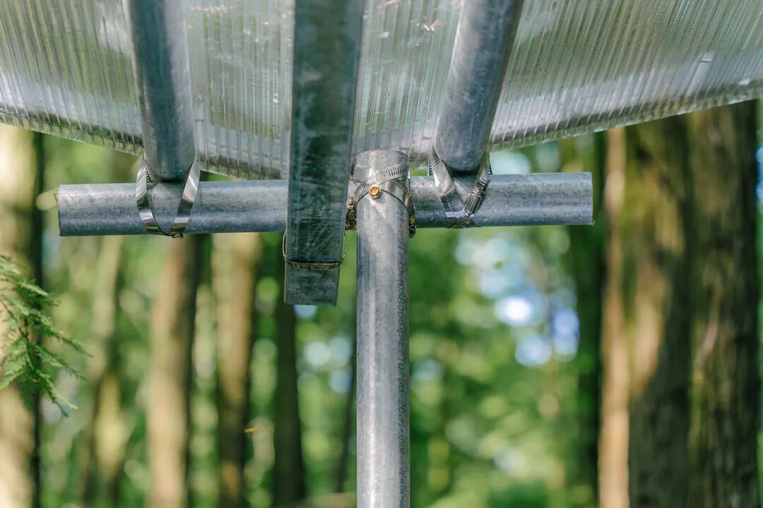 ▲金属抱箍加螺栓固定的镀锌钢管 © 赵赛