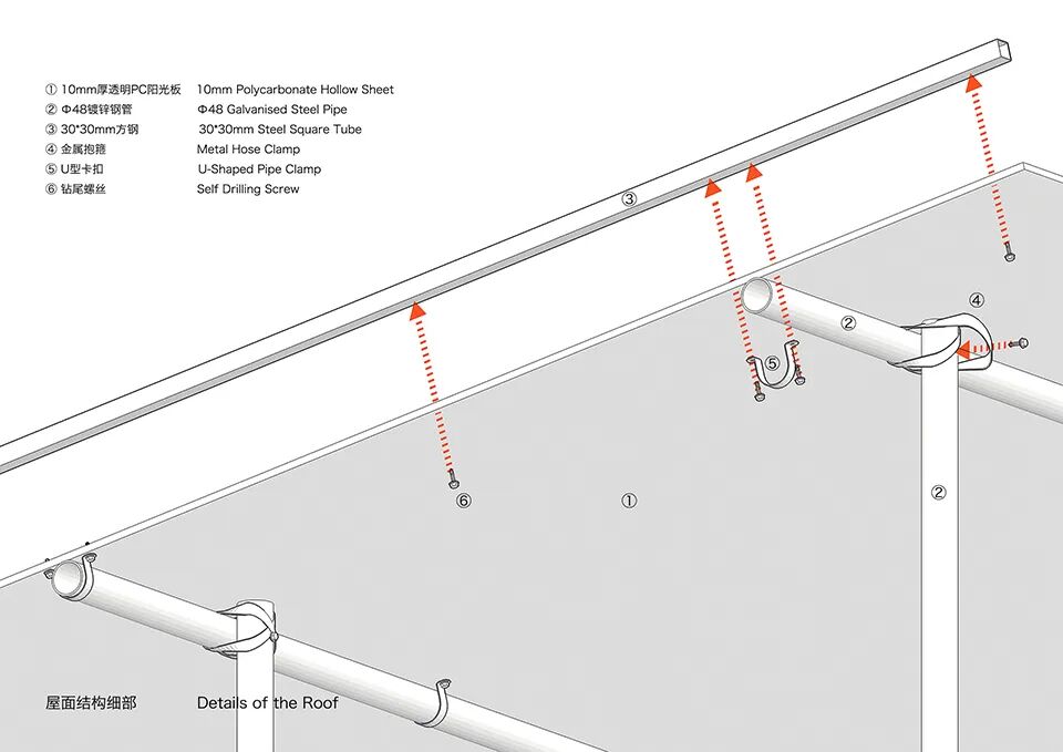 ▲镀锌钢管与PC阳光板 © 赵赛