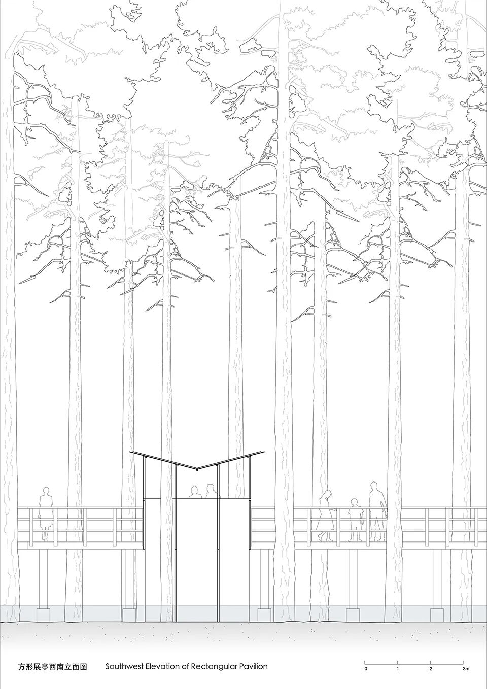▲方形展亭西南立面图 ©已知建筑