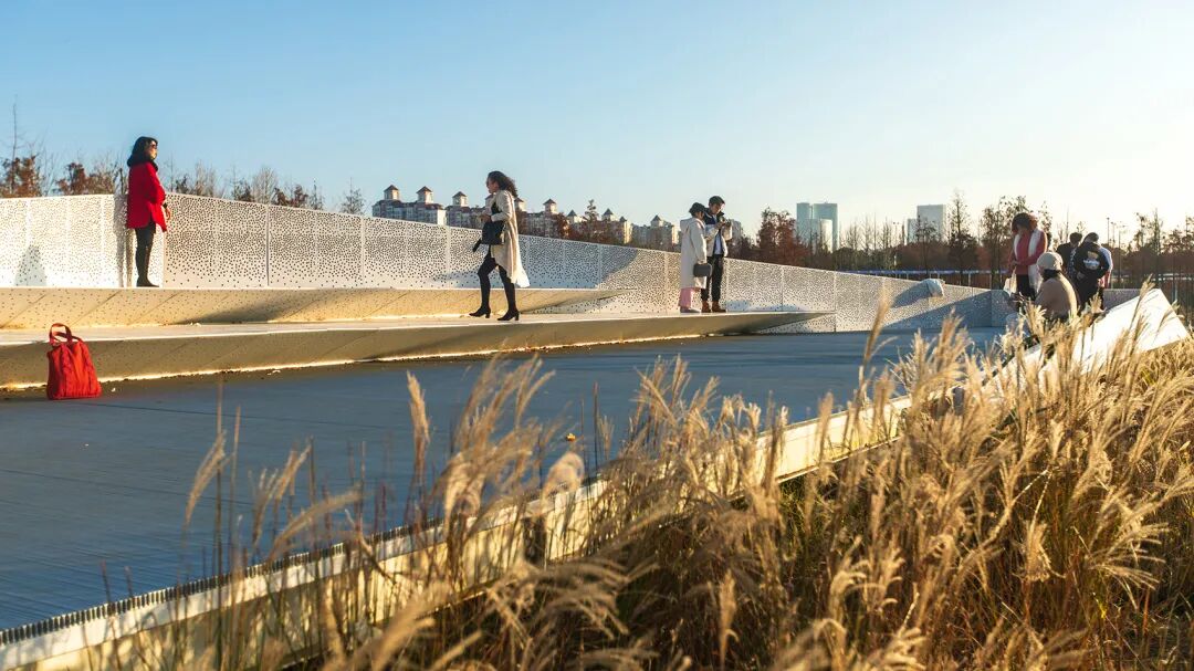 设计师通过精心布置的桥梁、平台、亭台楼阁和观景塔,使场地上形成了独具吸引力的人气焦点。这里的现代设计语言,为这座2000多年的古城带来了当下的审美自信和进步的气息。在此,古与今交汇,焕发着复古与新生。