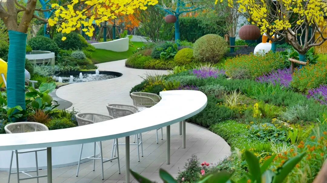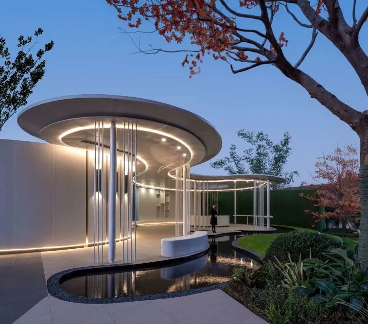 廊架环抱前场水景,凸显空间层次