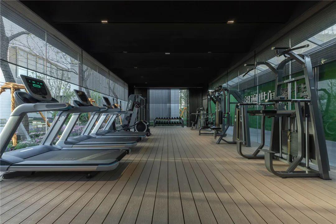 大面的采光玻璃,与庭院零距离连接,品读春花秋落四季更迭,在室内就可以感受自然和生命的律动之美,不出小区就可以享受健康的健身空间。