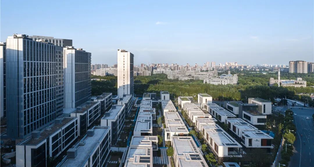 项目位于新江湾社区,毗邻五角场城市副中心,周边配套齐全,公园与绿地资源丰富,在湾谷科技园一期的基础上,水石设计承担了本次总计13.44万方的设计任务。