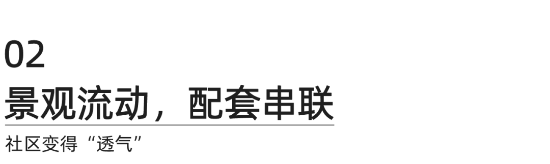 通过风雨连廊串联起主入口的各功能区域,给业主营造五星级酒店的无雨归家体验,连廊进行风格化设计,在满足功能的同时也保证了外在的颜值与景观视线的穿透。