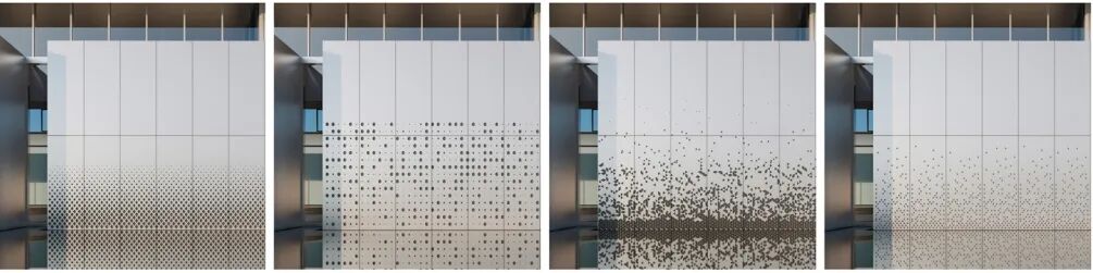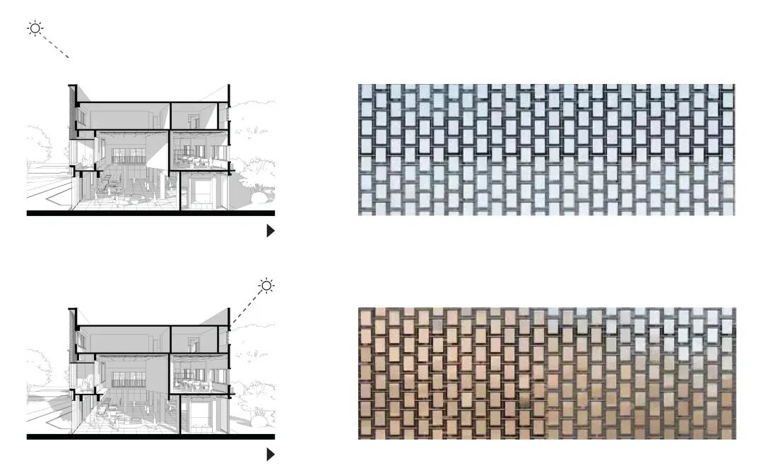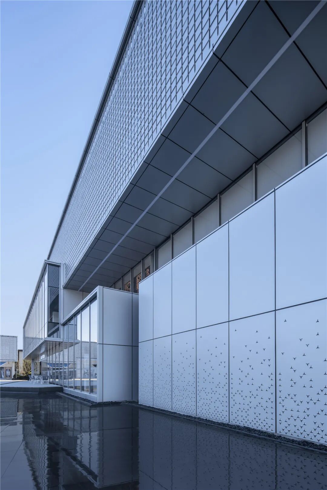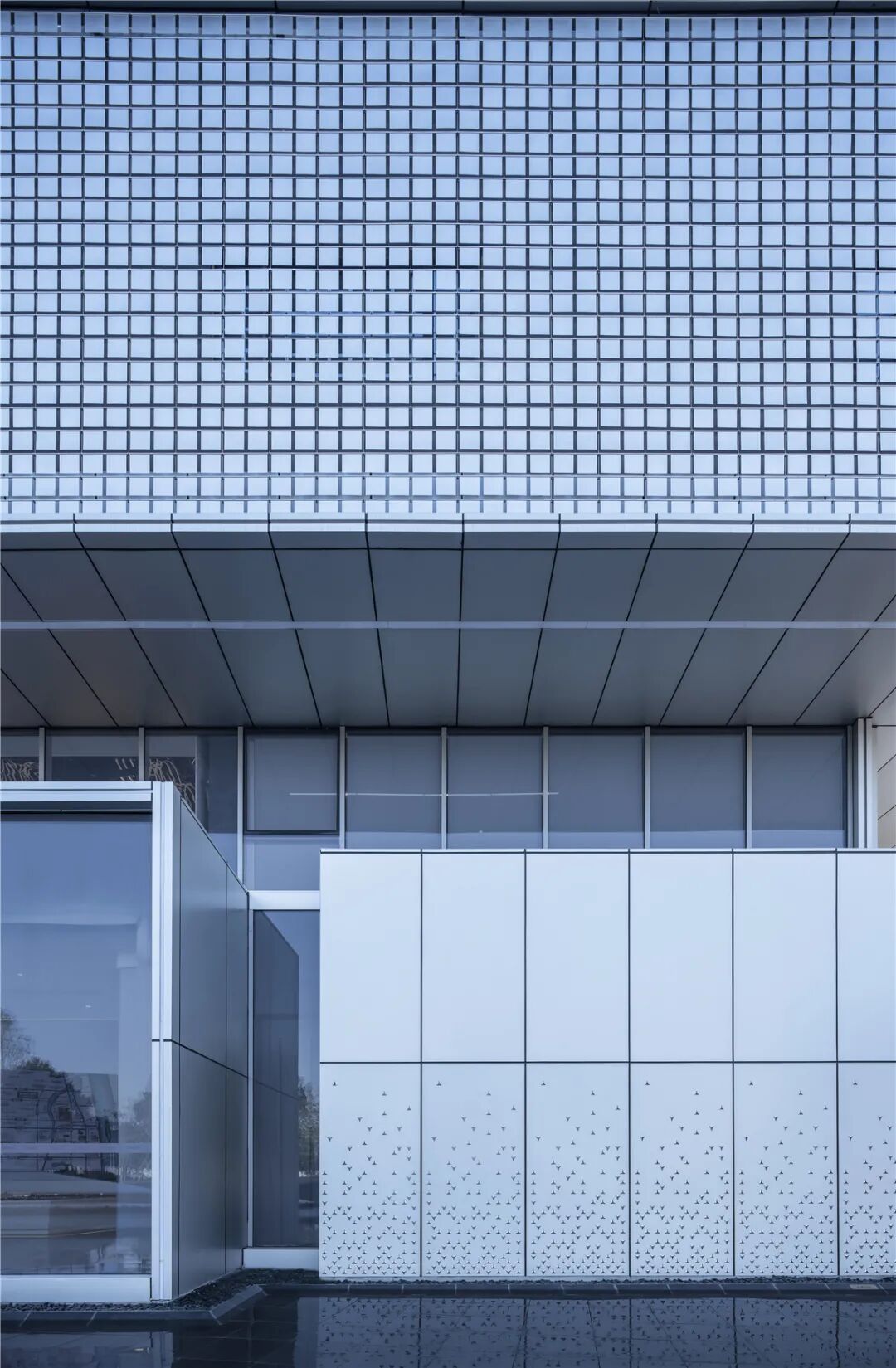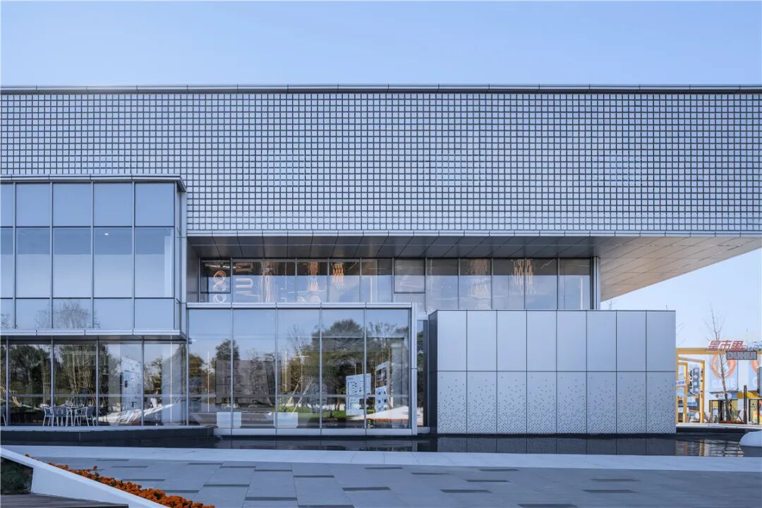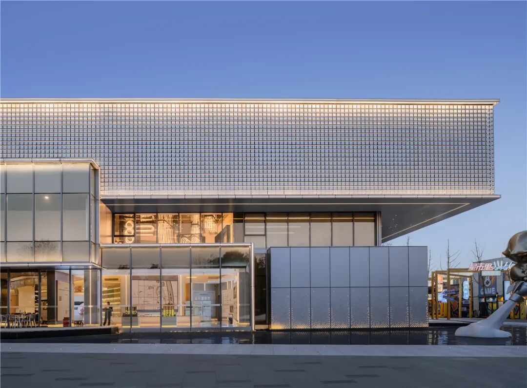 从晨曦到黄昏,随着每天太阳的光影变化,城市生活馆顶部的风动幕墙闪耀着不同颜色的光辉。