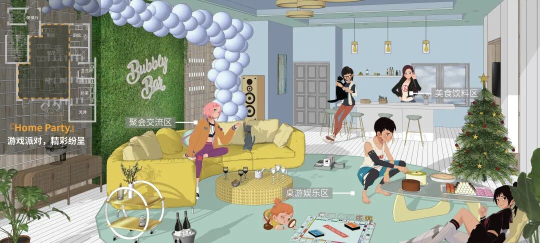 住宅的设计归根到底是生活的设计,而温暖的生活总是发生在多样的场景和聚合的空间中。当下社会生活因为交通和互联网的发展变得越来越轻,界限越来越模糊,人们多数时间处在一种流动的状态。典型的体现是“家”的各个功能越来越多的使用时间被分离出去,比如客厅被咖啡馆所分离,厨房和餐厅被餐馆所分离,卧室被酒店所分离。“家”的去功能化意味着生活的去中心化。