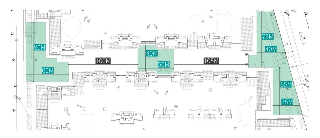 在本项目街巷的外部空间营造上,尺度宜人的聚集性节点与线性漫步空间错落有致地共同串联成了多样邻里空间。