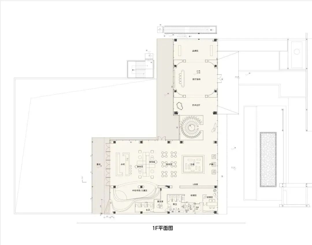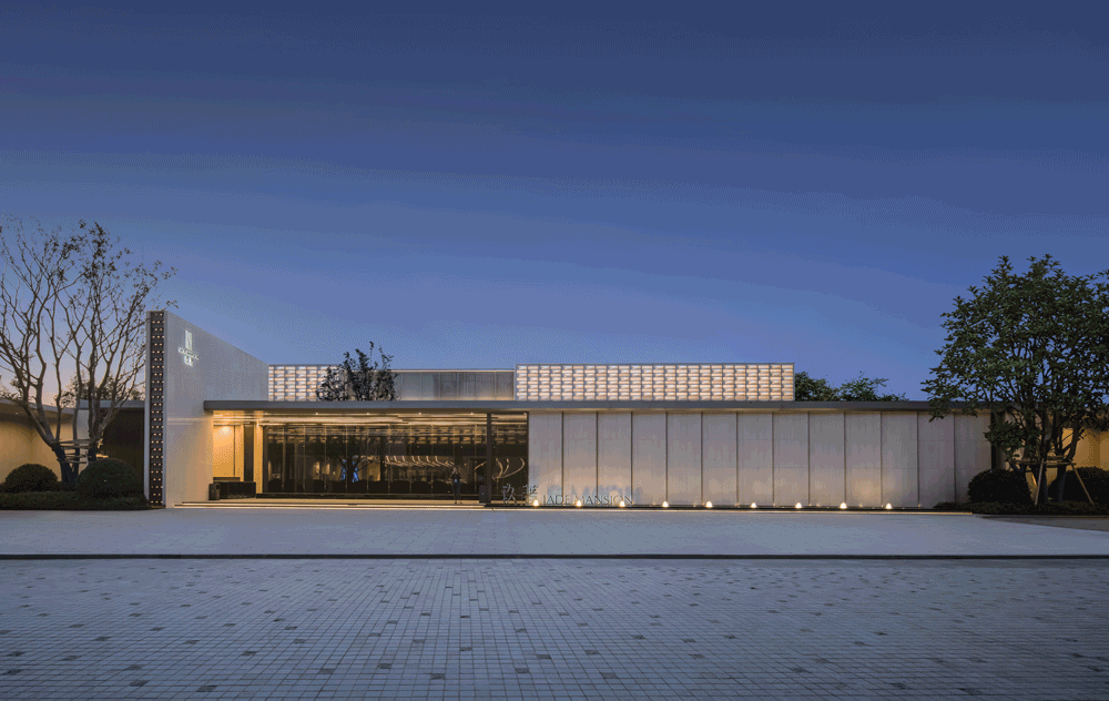 沿街为42米景观延展界面,形成雅致端庄的展示引导效果;以自然轻奢手法实现入口展示界面虚实结合,营造开合有致的空间,线条勾勒与秩序感叠合,既保留韵律感又具有变化性。