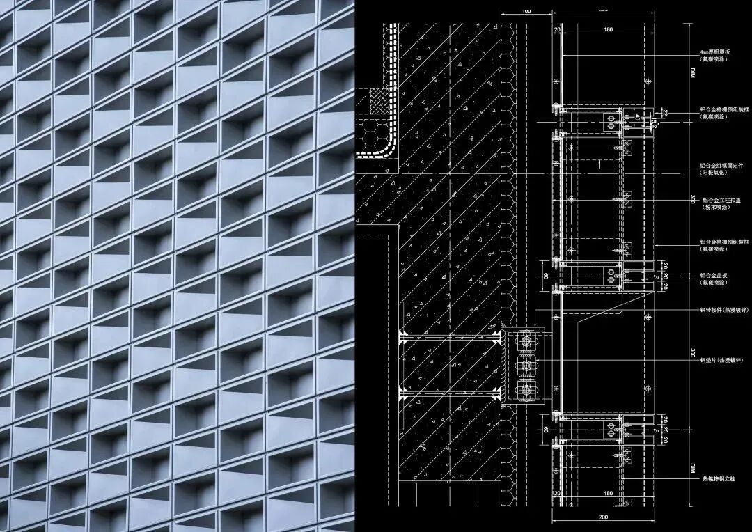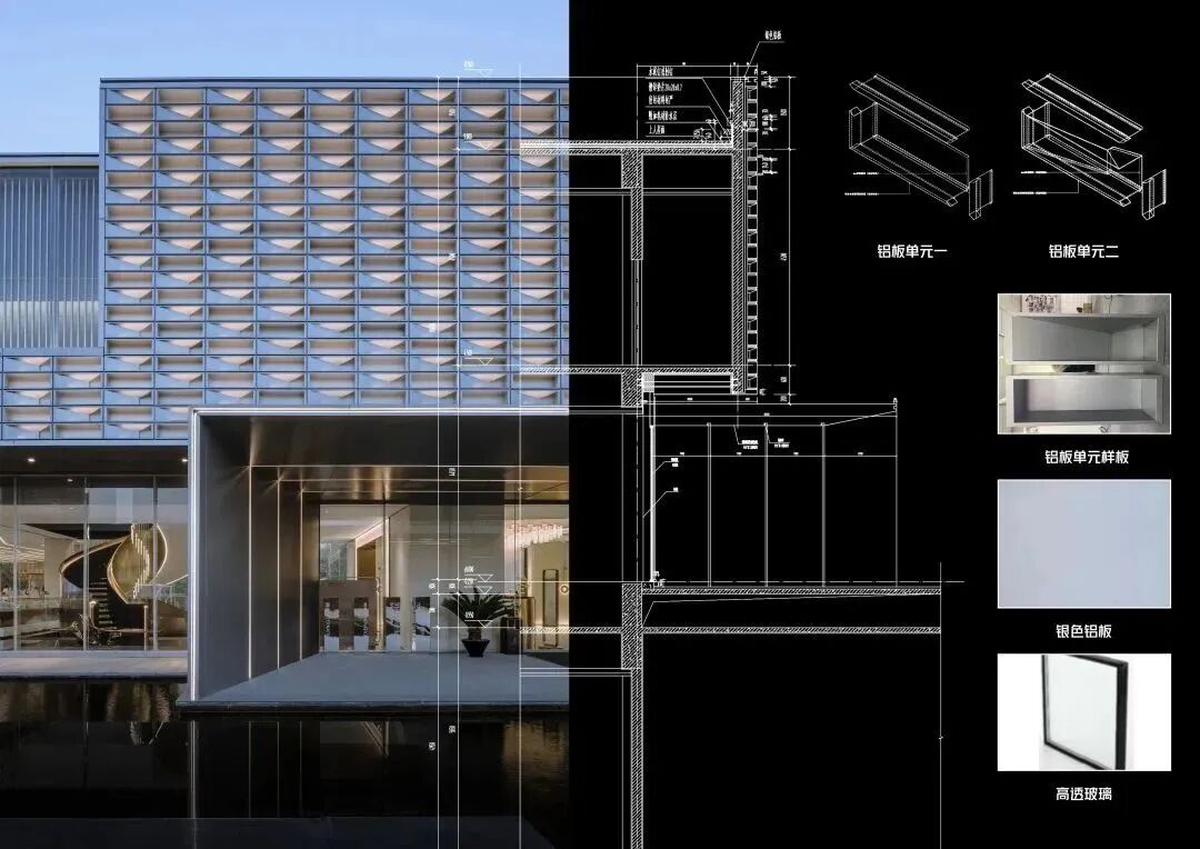 在项目时间周期比较紧张的情况下,定案后多次组织与景观、幕墙、灯光、建筑施工图及各深化厂家单位进行交底论证,优化幕墙龙骨构造做法及合理选用铝板、玻璃、铝型材等材料搭配,推敲铝板单元格幕墙等细部节点构造,在保证工程经济,时间可控的大前提下寻求建筑细节最优解,现场问题及时跟踪解决,同时感谢中信泰富业主对品质的追求,确保了项目的完美呈现。