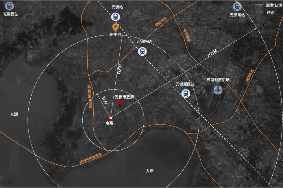 项目位于无锡滨湖区雪浪板块,地处太湖新城核心腹地,周边商配繁华,交通便利;周边生态基底优越,距太湖仅4KM,周边多个湿地公园、城市绿地。