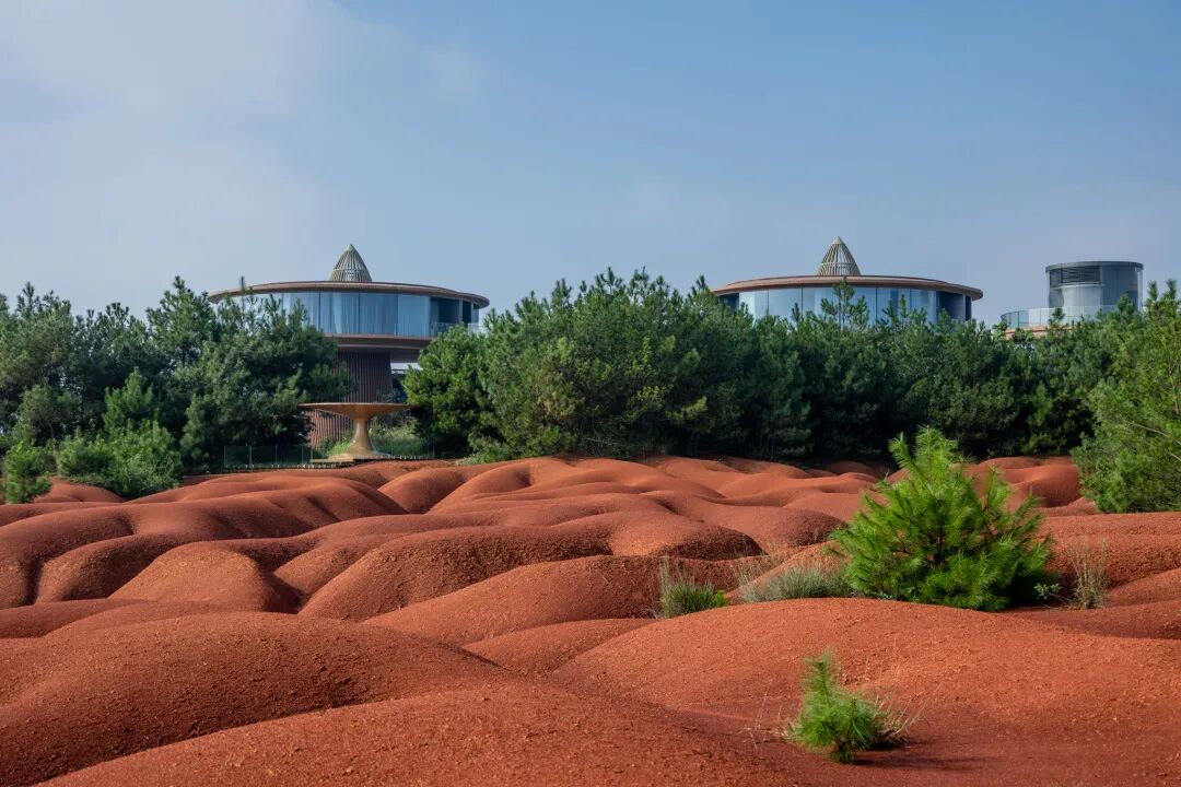 如果说红土公园是红色荒漠,那么红土酒店则是荒漠中的一处绿洲秘境,既遗世独立,又融入其中。