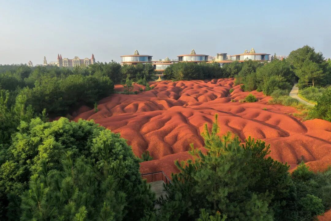 我们把酒店定位为自然生长的绿洲秘境。在这里,住客看得到时间的变化,听得见自然的声音,触碰得到久违的放松和野趣。面对这样一个几万年时间形成的红土遗址,时间的流逝都变得慢了起来,仿佛是尘世之外的一处离世秘境。