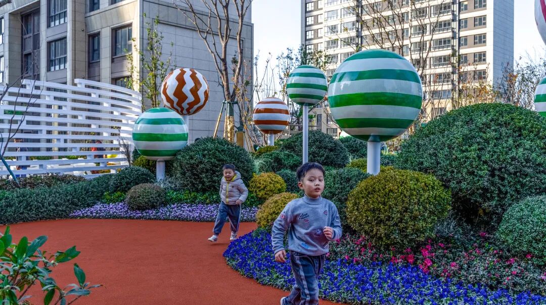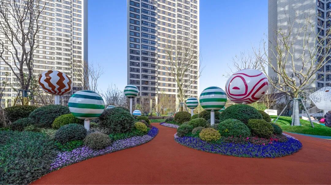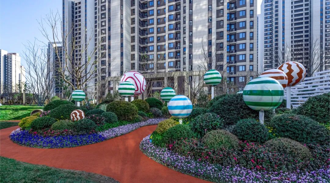 棒棒糖花园独特的装饰性灌木、搭配不同植物层次,以植物的雕刻,打造奇特的童话造型。将花园中的植物修剪为高低不同的球形错落在花坛里,制造了感性认知与自然理性的碰撞,同时满足女性与儿童空间的定位需求。