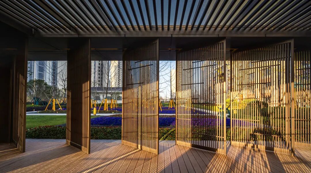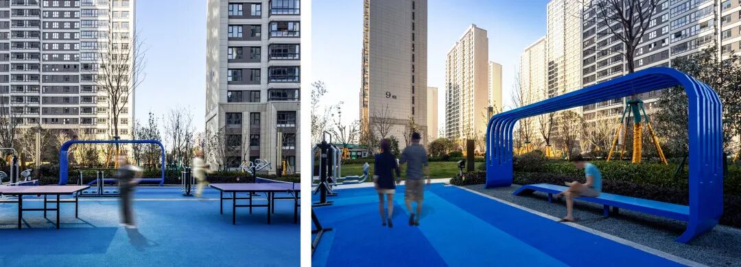 户外区域的廊架与健身场地里,满足使用住户的需求同时增加更多的户外休息空间、宠物活动空间、健身器械的设置,考虑到全龄段的使用需求以及老人活动场地划分器械使用区。