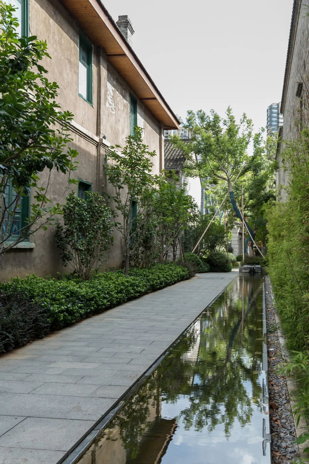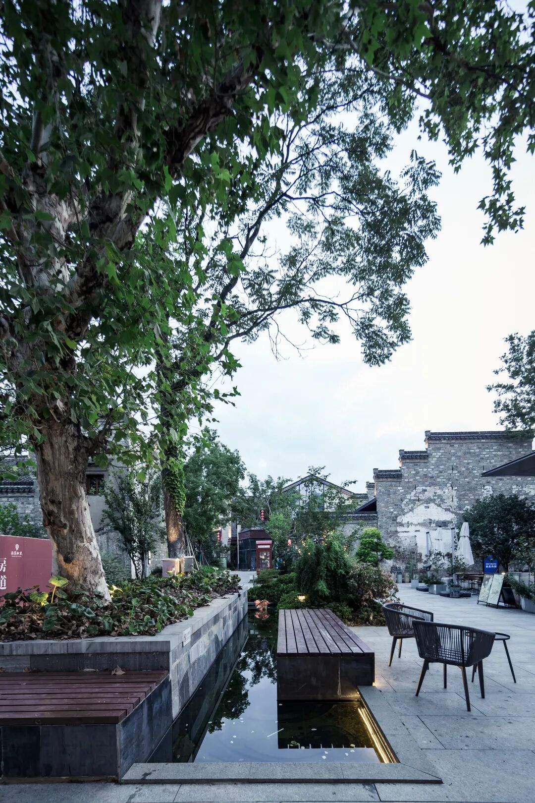 设计团队从再现遗存文化,融入现代城市生活出发,以梳理巷道空间、场地原始树木保护、新旧材料结合为主要的三个设计方向,利用“织补,共生”的手法展开综合性设计。