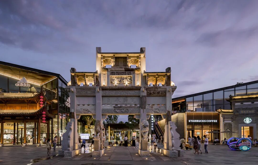 ▽来凤门处,旧时的坊门被复原,传统的市民生活重新回归