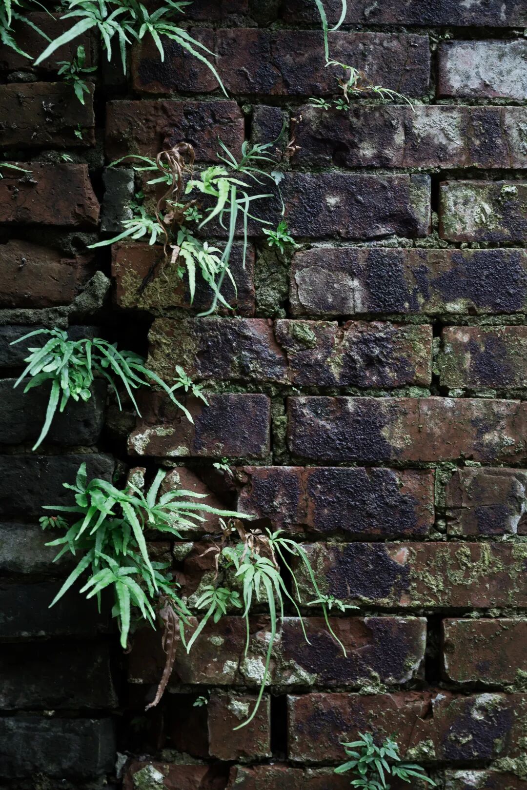 ▽苔藓与蕨类植物从墙石的缝隙中生长而来