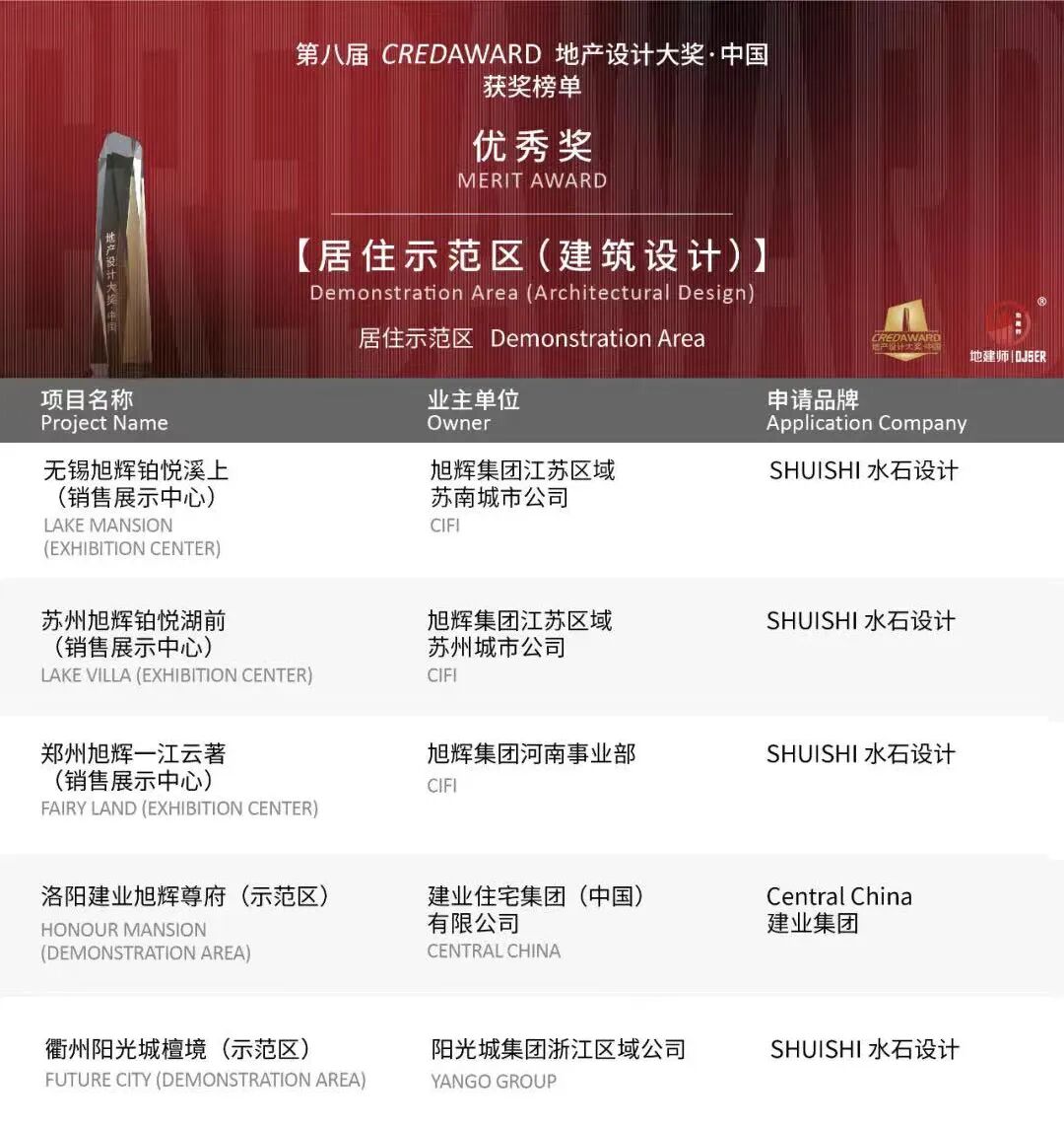 水石设计荣获第八届CREDAWARD地产设计大奖 · 中国 7项荣誉!