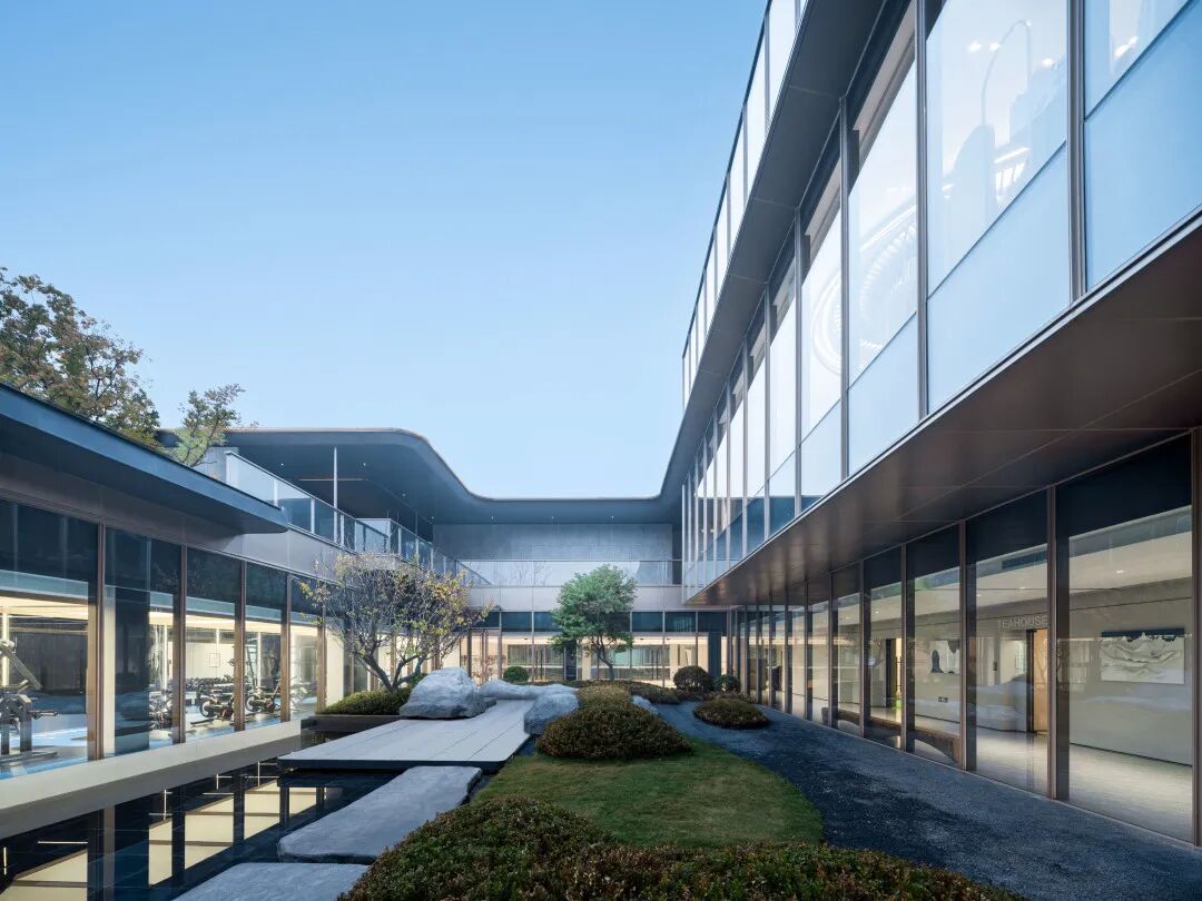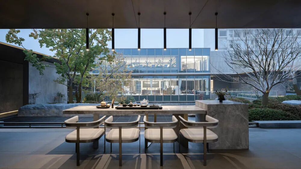 下沉庭院将后场园林景观延伸至建筑空间中,建筑与自然,人与景,观者与被观者,共存于亦动亦静的空间之中。从室内到室外,从地面到地下;巧妙消隐了空间意义上有形的“界”。