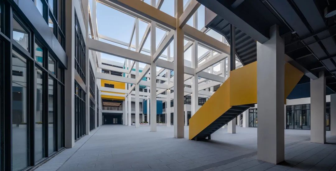 午后的阳光倾洒进这个55mX45m的庭院当中,与建筑的梁柱系统“唱和”,形成了非常戏剧性的场景体验。
