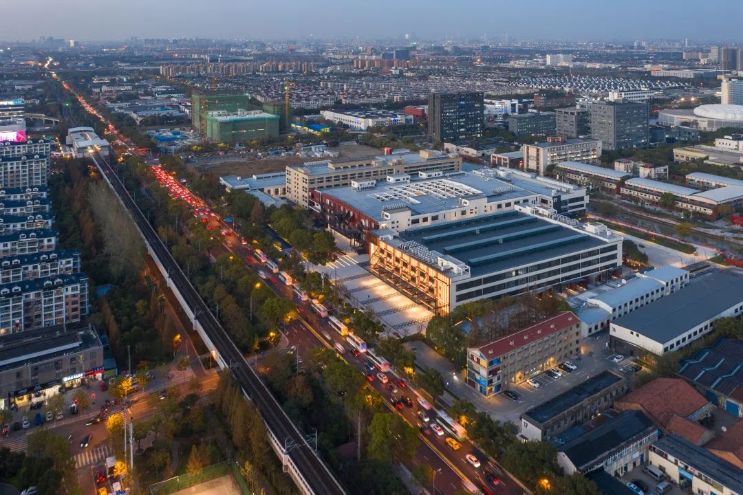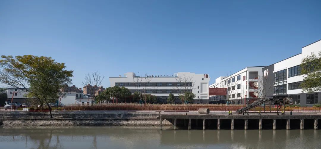 橡胶厂是老闵行工业基地的一部分,城市建设发展到今天,周边形成了以交通大学为核心的南上海滨江产业发展聚集区;园区东侧为交大科技园和零号湾产业园,丰富的工业历史文脉和滨水景观资源,为园区丰富的多元场景设计和周边的客户定位提供基础和保障。西侧的沪闵路和横泾港河南北方向形成了基地两个最长最重要的界面,作为连接老闵行和上海主城的干道,沪闵路以及轨道交通形成繁忙的人员交流渠道;而横泾港在阻隔东西方向周边联系的同时,也提供了产业功能和自然环境结合的机遇。