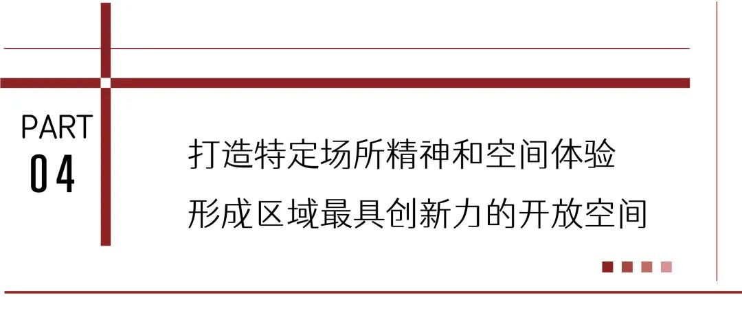 两个城市界面之间利用厂房横向间距延伸出的街巷空间把社区缝合在了一起。净宽7m的双面步行街区、占地3000平的包豪斯体育广场、4000平的水岸运动休闲广场和园区门户的城市会客广场。3种不同类型的广场,分散在园区的北、西和东侧,通过5条不同主题的巷弄街区联系起来。